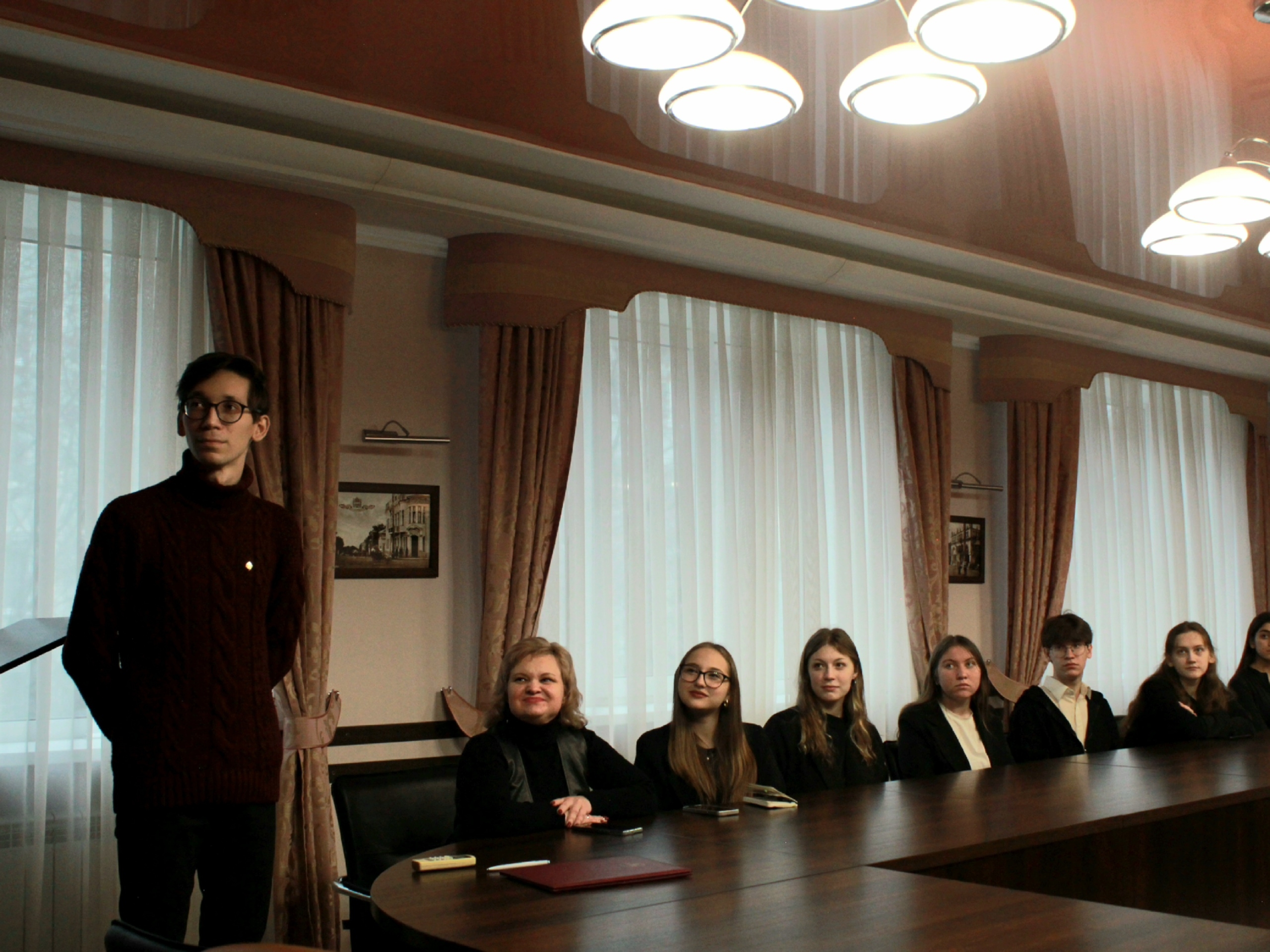 На встрече директор Виталий Анатольевич Матчинов и председатель организации Александр Сергеевич Комаров обсудили со студенческим советом направления деятельности, мероприятия для студентов, а также пути развития и расширения его функций в сферах академической, социальной и культурной деятельности.